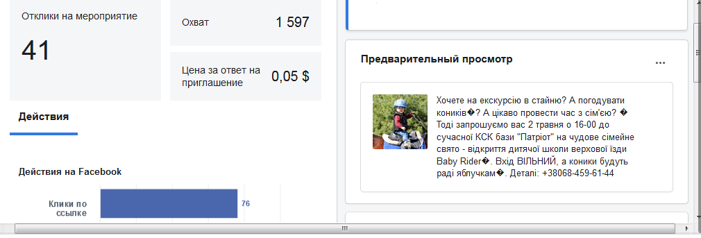 Продумали деталі та фішки заходу (фотозона, катання на конях та тачанці, пригощання смаколиками як діток так і коней, екскурсія по конюшні, запальна дискотека та дитячий феєрверк)  – це дало нам можливість максимально зацікавити цільову аудиторію весело та цікаво провести приємний день для всієї сім’ї.