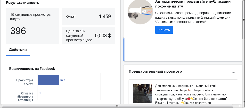 Ми зробили ще одне платне просування – на перегляди відео на ту ж аудиторію: