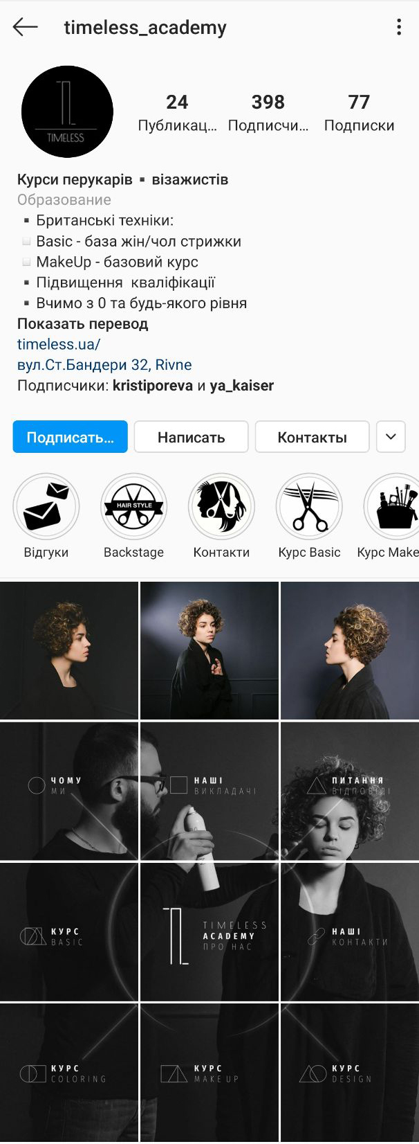 Профіль Timelles Academy – курси навчання для перукарів та візажистів: